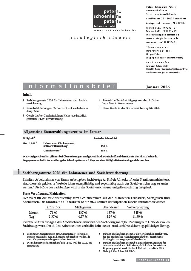 - Sachbezugswerte 2026 für Lohnsteuer und Sozialversicherung
